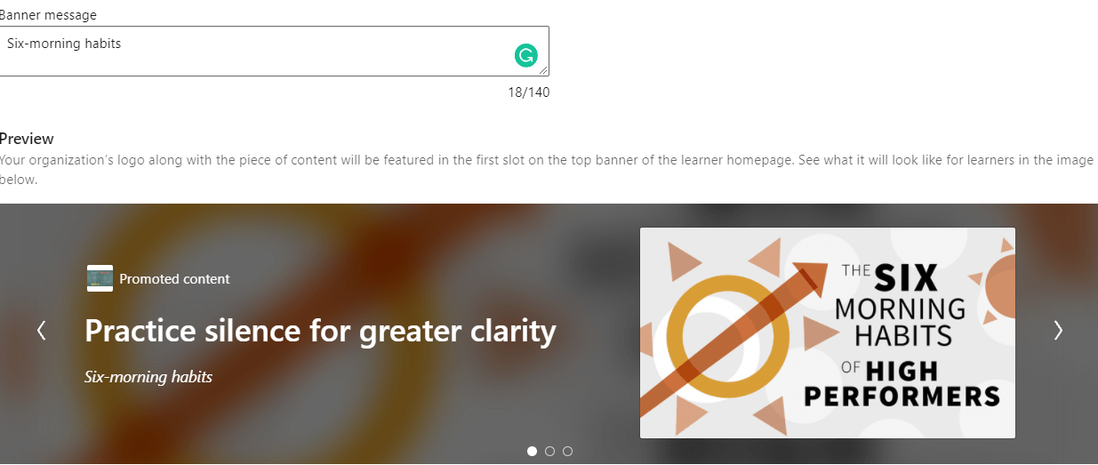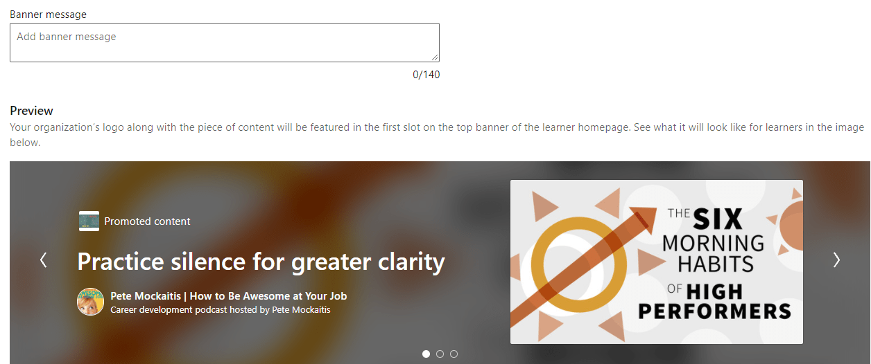 The banner is no longer a static image, rather you can add any piece of content, from a course to a video, to a document, a collection, even a learning path.
