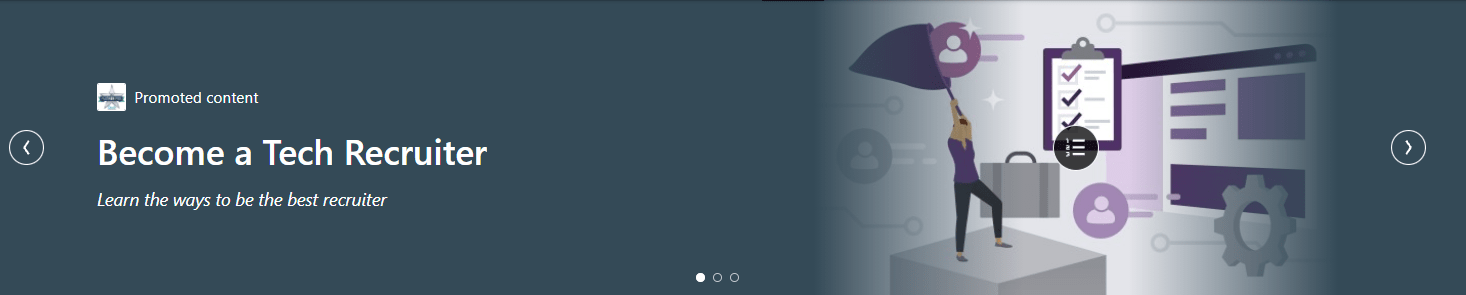 This is a part that I liked in the banner angle. In the above example, the learner can click the icon and it takes them right to the content, in this case, the “Become a Tech Recruiter” learning path.