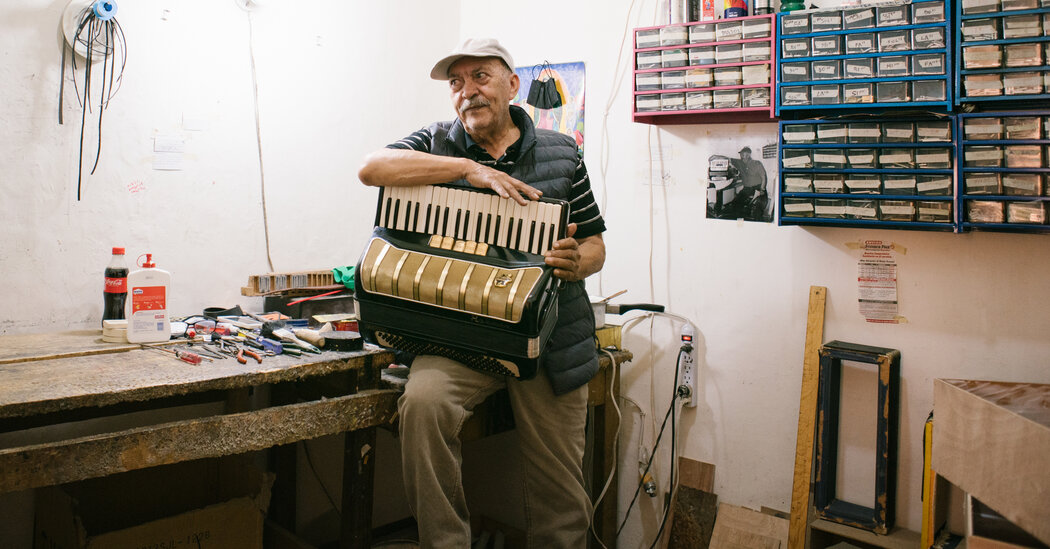 Here — in a side office, up the stairs of an unmarked building hidden away on a block of the city center jammed with flashy music stores that used thumping loudspeakers to attract customers — was the workshop of one of this city’s oldest and most accordion repairmen.