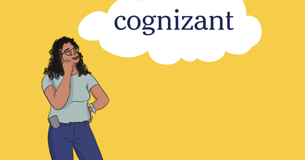 The word cognizant has appeared in 133 articles on NYTimes.com in the past year, including on Oct. 29 in “Part-Time Farmers, Part-Time Rock Stars: A Chinese Band’s Unlikely Rise” by Vivian Wang, which is about Ba Nong, the frontman of the band Varihnaz, who worked as a graphic designer in a large city when he began to write songs: